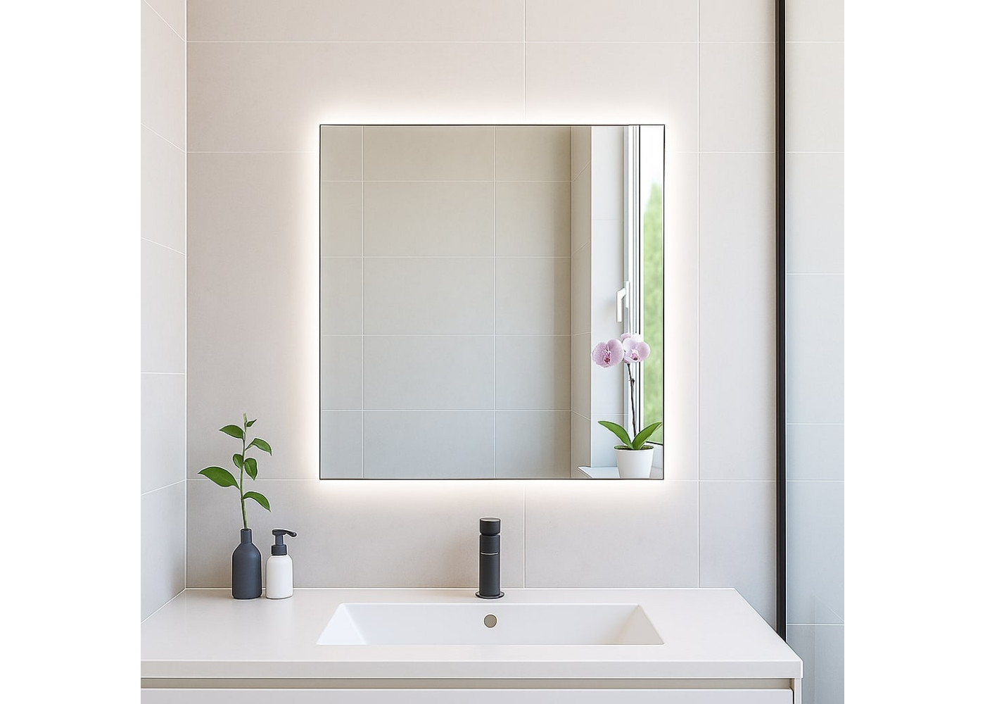 Вбудоване LED-підсвічування забезпечує рівномірне, м’яке світло, яке комфортне для очей і підходить для щоденних гігієнічних процедур, макіяжу чи гоління. Завдяки вологостійким матеріалам, дзеркало стійке до перепадів температур і високої вологості, що робить його ідеальним для використання у ванних кімнатах.