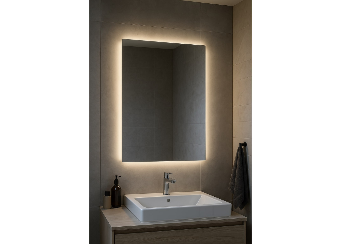 LumoForm Classic MS — це прямокутне дзеркало розміром 700x900 мм із вбудованим LED підсвічуванням, яке гармонійно поєднує
