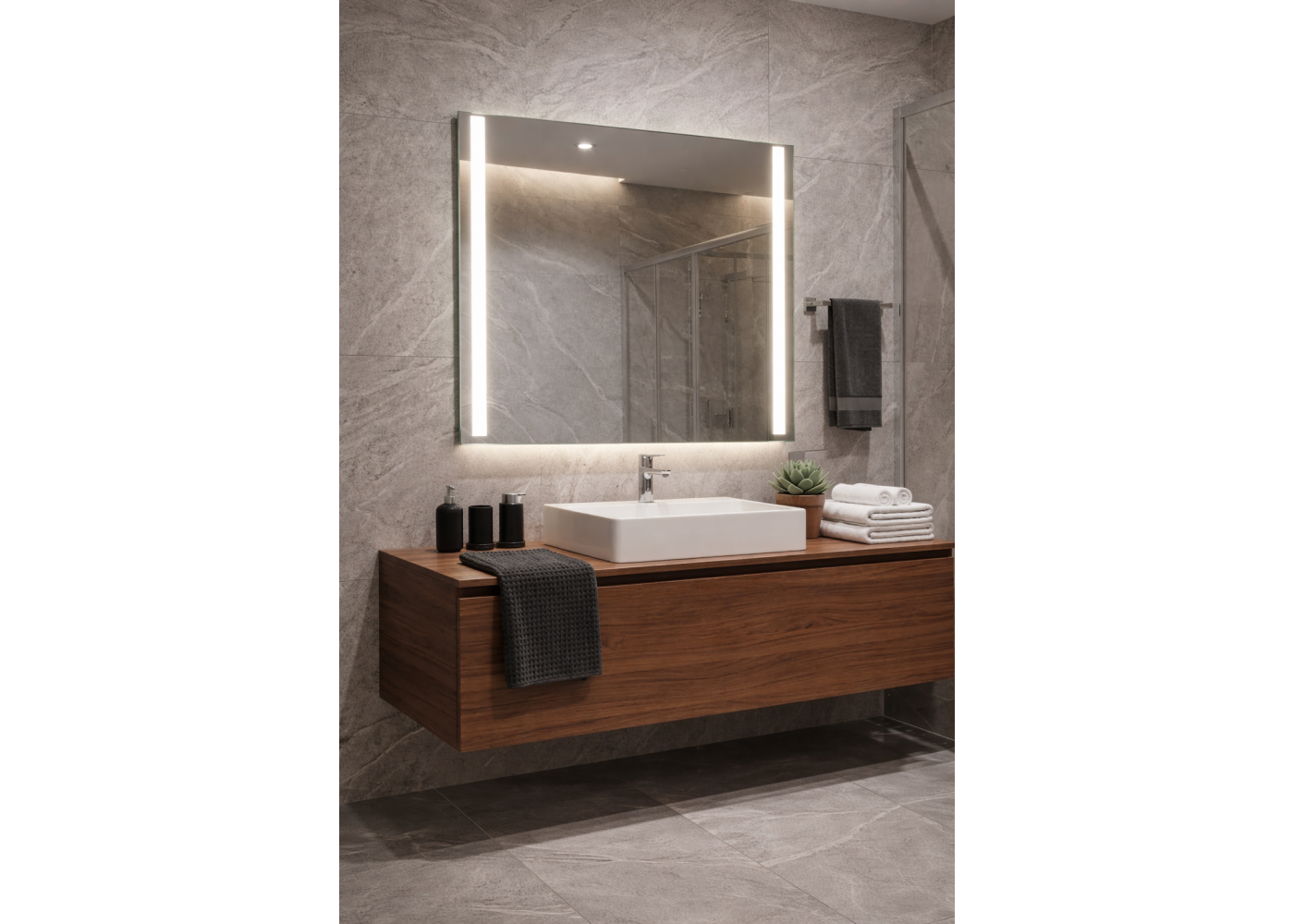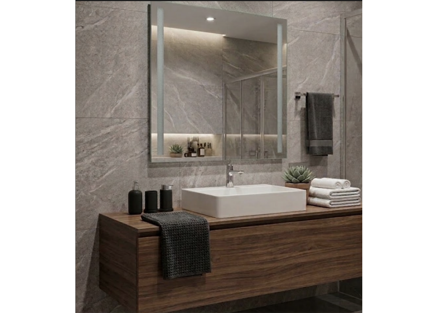 Обновите интерьер ванной комнаты с элегантным прямоугольным зеркалом с LED подсветкой Santorini-03 LS . Благодаря универсальному размеру 80x70см и изысканному дизайну, зеркало станет не только функциональным элементом, но и современным украшением вашего пространства.