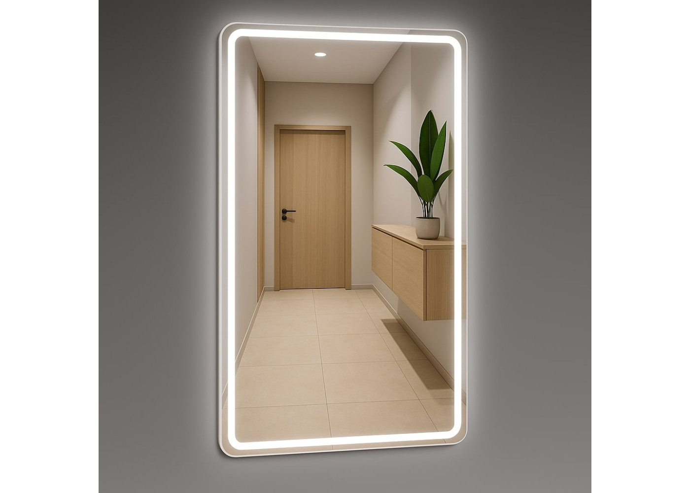 Встроенное LED-освещение обеспечивает мягкий, равномерный свет, не слепящий и создающий уютную атмосферу. Зеркало отлично освещает лицо – идеально для ухода за собой, нанесения макияжа или последнего взгляда перед выходом из дома.