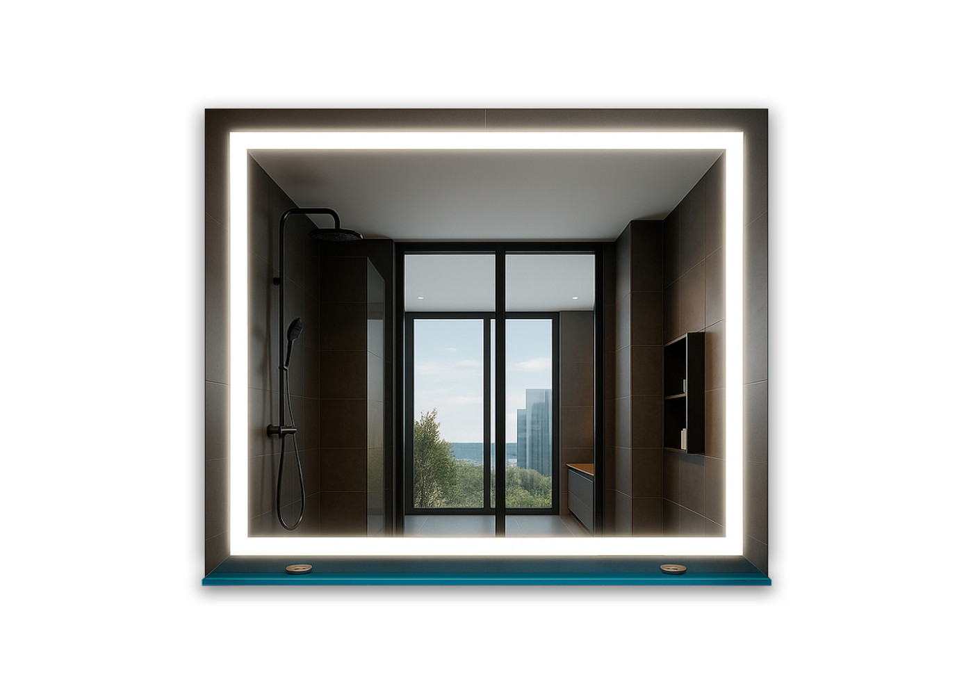 Прямоугольное зеркало с LED подсветкой и полкой LumoView LS 800x600 мм (200123) — стильное решение для современной ванной комнаты.